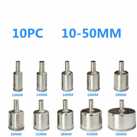 10pcs Diamond Coated Hss Drill Bit Set Tile Marble Glass Ceramic Hole Saw Drilling Bits For Power Tools 6mm-30mm