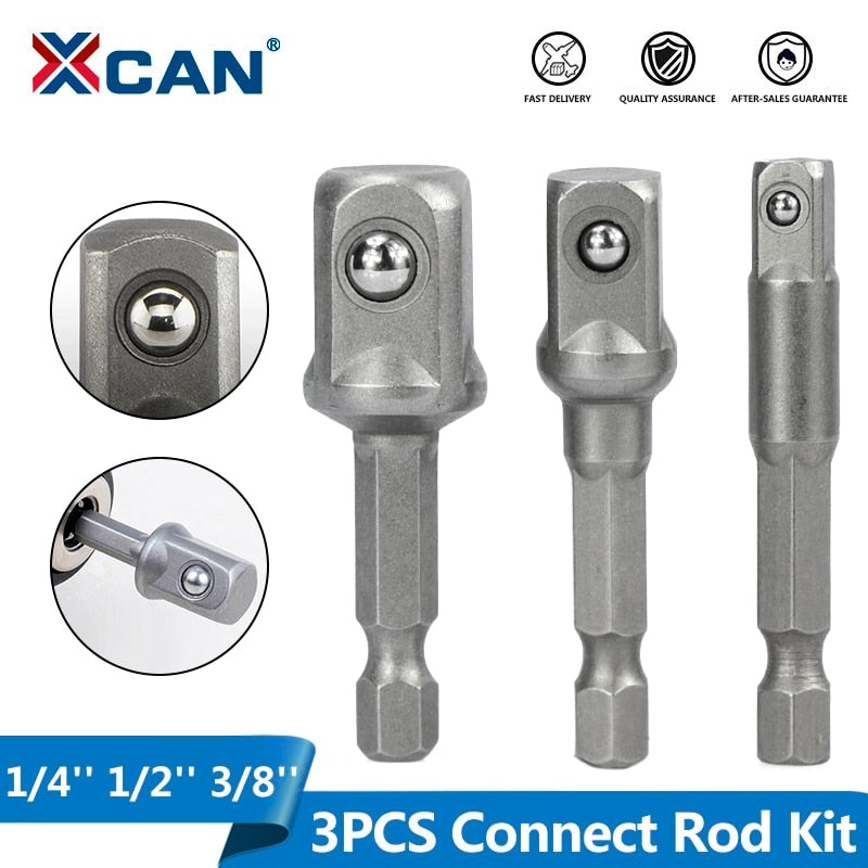 XCAN 3pcs 1/4 "3/8" 1/2 " Socket Adapter Hex Shank Drill bits Extension Rod Power Tool Accessories